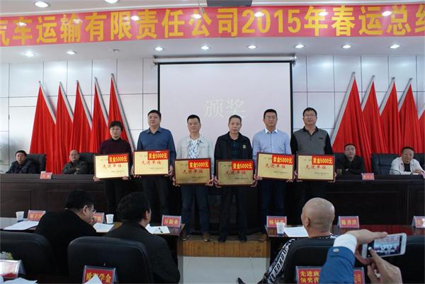 董事長(zhǎng)兼總經(jīng)理彭瑞華等公司領(lǐng)導(dǎo)為2015年春運(yùn)先進(jìn)班組頒獎(jiǎng)