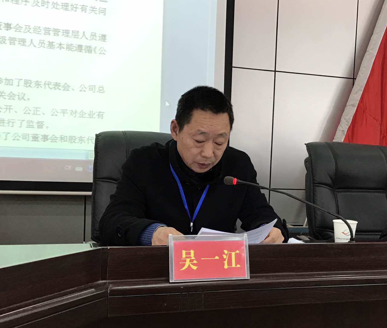 公司監(jiān)事會主席吳一江作《公司監(jiān)事會2017年工作報告》