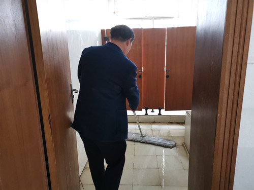 3月13號(hào),是輪值衛(wèi)生的第一個(gè)星期,總部五樓衛(wèi)生由審計(jì)部負(fù)責(zé),公司監(jiān)事、紀(jì)委書記黃文和審計(jì)部的同事把五樓男女廁所、樓梯、走廊過道衛(wèi)生里里外外打掃得干干凈凈。負(fù)責(zé)三樓衛(wèi)生的黨群部部長(zhǎng)鐘愛華和四樓衛(wèi)生的保衛(wèi)部部長(zhǎng)姚邵洪也是帶著部門同事一起打掃衛(wèi)生。